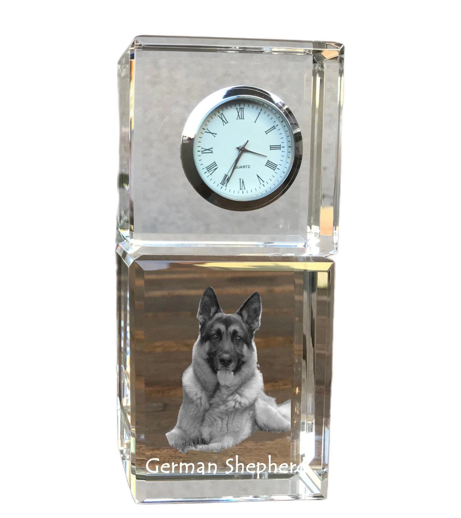 Vokiečių aviganis (German Shepherd Dog) – Krištolo laikrodis su nuotrauka