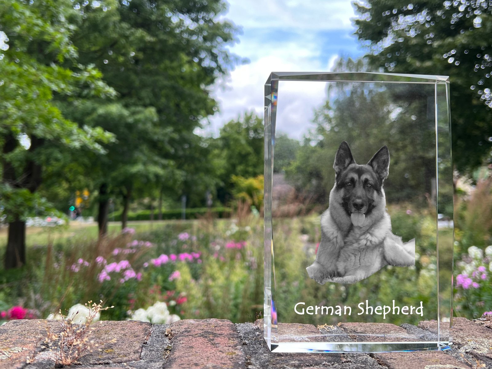 Vokiečių aviganis (German Shepherd Dog) – Krištolo pakabukas su šunimi